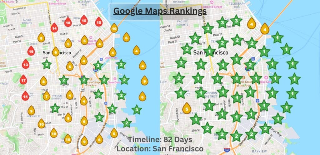 This San Francisco business went from inconsistent visibility with rankings scattered across pages 1-3, to dominating their local market with #1 rankings throughout their service area — all within 82 days.